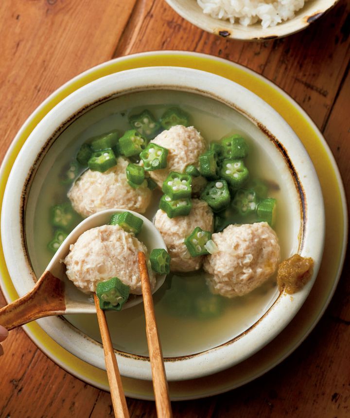 鶏ひき肉で作る団子のふわふわ感と、オクラのねばねば食感が楽しい!