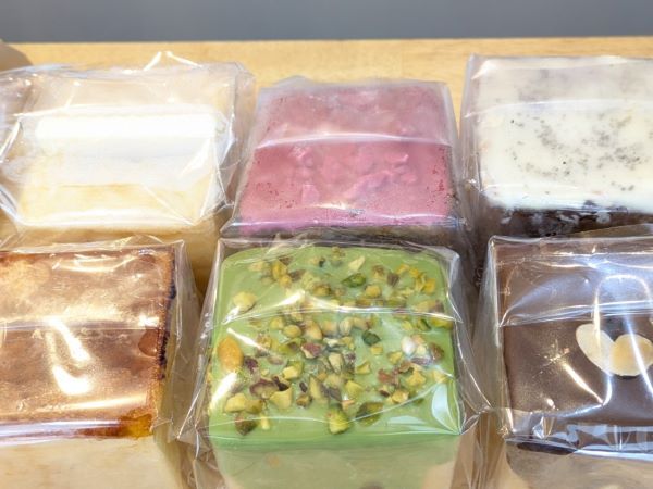 そのこだわりの食パンがミニサイズで楽しめるのが、こちらのラインナップ!北海道産粒あんと柔しい甘さのホイップクリームが入っている「あん生クリームキューブ」、自家製カスタードクリームとホイップクリームが同時に楽しめる「ダブルクリームキューブ」、中はビターなチョコで表面はスイートチョコをかけて可愛く仕上げた「生チョコキューブ」、ピスタチオクリームとホワイトチョコのミックスがコーティングされ、中もピスタチオクリームがたっぷりの「ピスタチオキューブ」など、全9種類です。