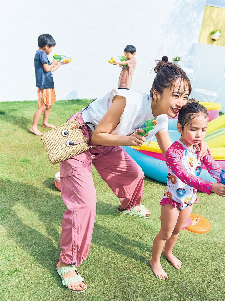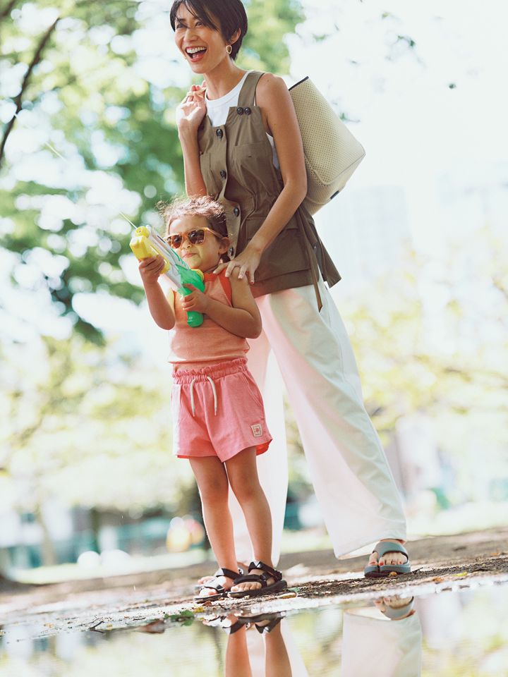 濡れてもいいオシャレ服があると、雨の日も水遊びも楽しみになるもの。「雨の日感」なくオシャレできるので、帰りに晴れても違和感なし。撥水素材は汚れもサッと拭いて落ちるものが多く、子連れの普段着としても重宝しそうです。