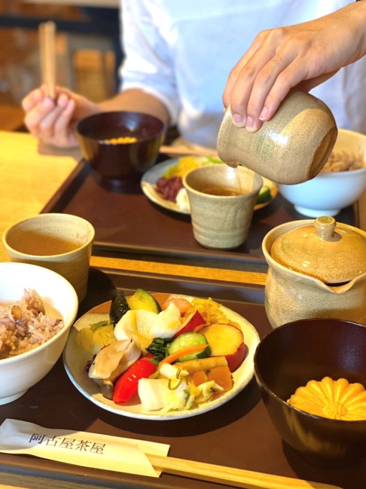 お漬物がおすすめの茶屋では、ランチにバイキングが楽しめます。20種類の色とりどりのお漬物は写真映え。お茶漬けバイキングの白ご飯やみそ汁などは、すべておかわり自由!時間制限なしでランチを思う存分楽しめます。お好みで盛りつけできるのが、うれしいポイントですね。