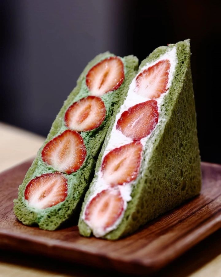 「祇園すぎもと」のフルーツサンド。店内のショーケースには色とりどりのフルーツサンドがたくさん並んでいます。食べ歩きがしやすく、サンドウィッチなのにケーキを食べているような満足感が得られそうです。