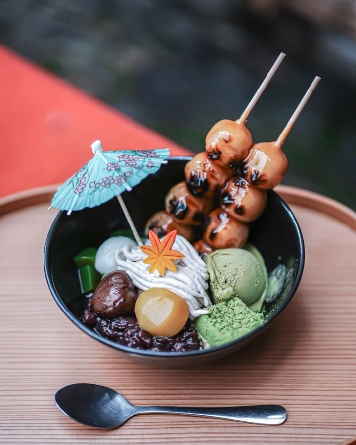 1909年に創業した東山にある甘味処。栗と抹茶の和パフェは、抹茶アイスやみたらし団子、栗の甘露煮と京都らしいラインナップ。甘さ控えめで上品な味は、東山界隈を散策する人たちの疲れを癒してくれます。