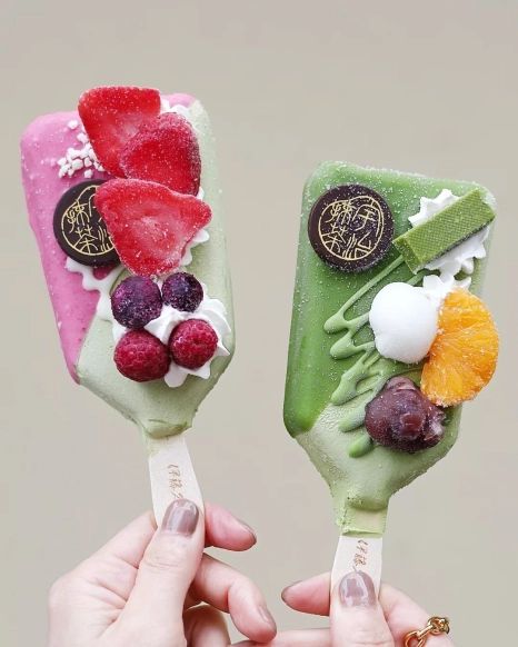インスタで話題の抹茶パフェアイスバー(まっちゃ)。暑い季節にはソフトクリームやアイスなど冷たいスイーツを食べたいですよね。アイスにトッピングされている一口サイズの果物は、シャリシャリで食べ応え抜群♡季節に合わせて、マンゴーやパイナップルなどの味も展開しています。見た目も華やかなので、記念撮影のチャンスですよ。