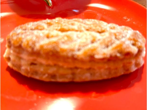 こちらのリーフパイはシェフがひとつひとつパイ生地を折って焼き上げたものです。見て下さい。この厚み。 一口食べるとサクっとパイ生地のおいしさが広がります。パイ生地好きさんには是非こちらも選んで頂きたい。 オレンジも香料だけでなくオレンジそのものが入っています。柑橘のおいしさがふわーっと鼻に抜けていきます。マダムのマイコさんもお薦めの焼菓子の一つです。