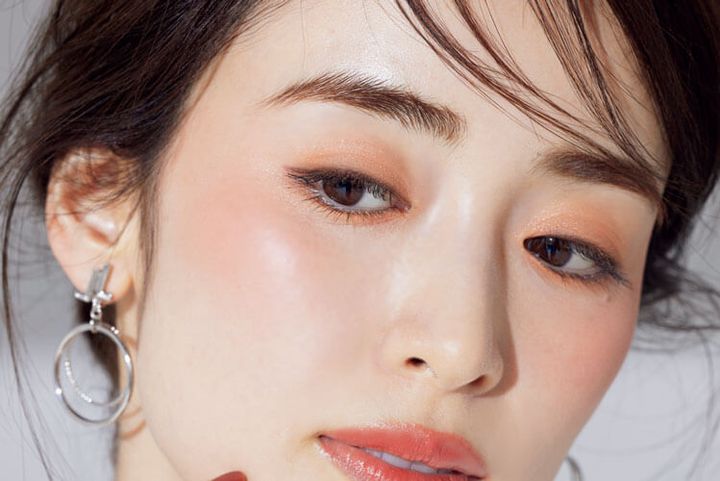 目元がピュアな分、チークはCを高めに広げて大人っぽさを演出。