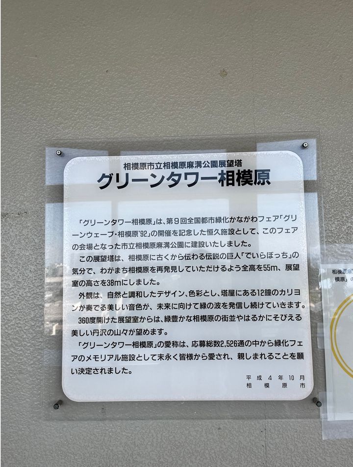 この塔は神奈川県相模原市にある相模原麻溝公園の中にある「グリーンタワー相模原」でした。