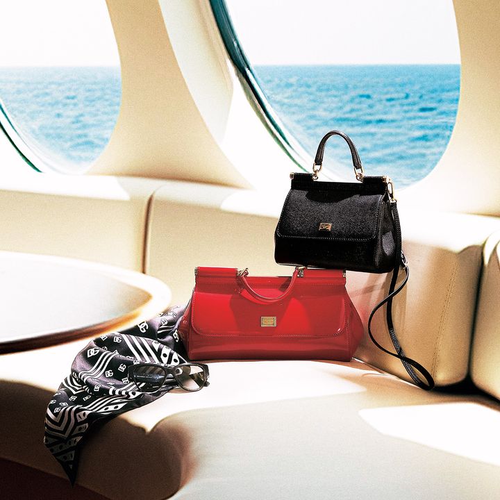トップハンドルでクラシックに、ストラップをつけてカジュアルに…いろんな使い方ができるから、荷物は最小限にしたい旅にも活躍。ベーシックなミディアムもいいけれど、横長のロングならぐっと今どきなムードが纏えるはず。バッグ「シシリー」ブラック〈カーフスキン/H16×W20×D8㎝〉¥242,000 レッド〈シャイニーカーフスキン/H18×W29×D12㎝〉¥363,000 スカーフ〈H90×W90㎝〉¥93,500(すべてドルチェ&ガッバーナ/ドルチェ&ガッバーナ ジャパン)サングラス¥40,920(ドルチェ&ガッバーナ/ルックスオティカジャパン カスタマーサービス)