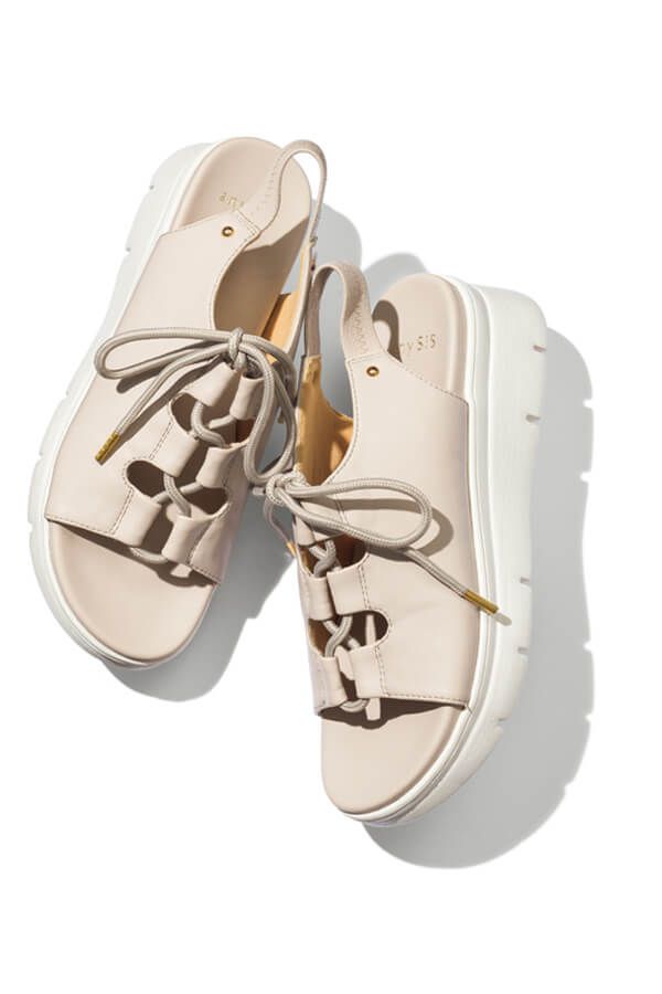 ソールに重厚感のあるスポサンも、淡いベージュカラーならマイルドかつ軽やか。レースアップディティールで個性もひとさじ。
