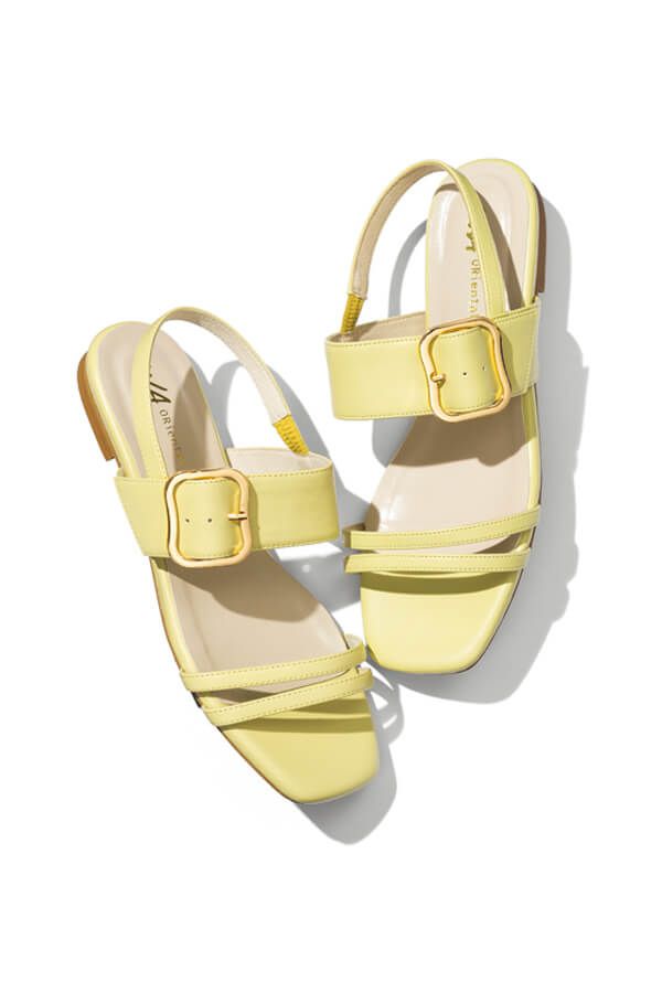 イエローが春に引き続きIN。足元でさりげなく取り入れるのがおしゃれ。スクエアバックルでリッチに。