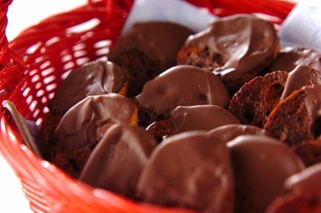 バゲットにチョコレートを溶かしたミルクを染み込ませて焼き上げた絶品ラスク。チョコが残ったら、仕上げ用にデコレーションしても良いですね。