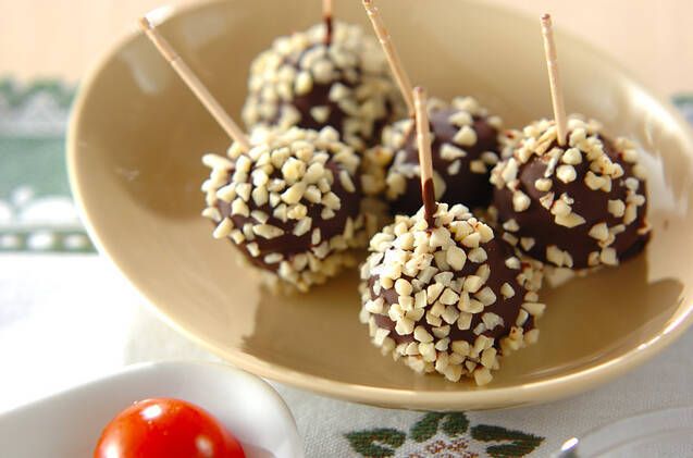カステラボールにチョコレートをコーティングして、アーモンドダイスをまぶしました。甘いものが好きな方にはたまらないデザートです。