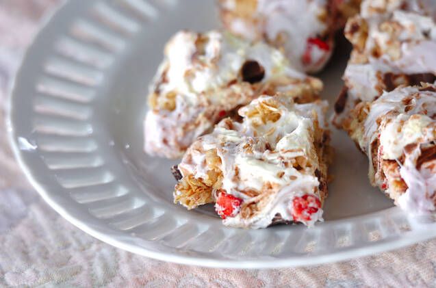 マシュマロのもっちり感とシリアルのさっくり感が堪能できる簡単おやつはブラックコーヒーと相性抜群!レンジで溶かしたマシュマロに刻んだチョコレートとシリアルをザクザク混ぜるだけ。あっという間に作れます。