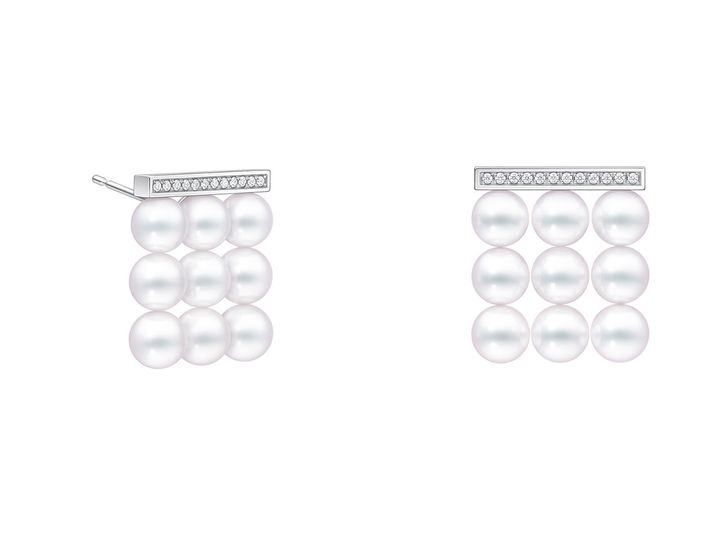 あこや真珠3珠を3列重ねてスクエアフォルムに仕立て「バランス」を新たな解釈で表現した「balance build(バランス ビルド)」。