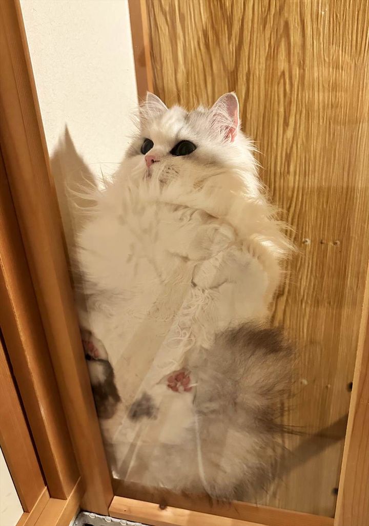 猫のおてても肉球もかわいいですよね。 ミヌエットがガラス越しに見せてくれた、ある状態が話題になっています!