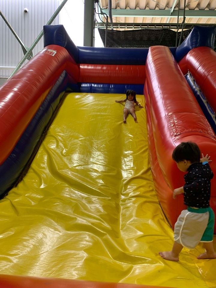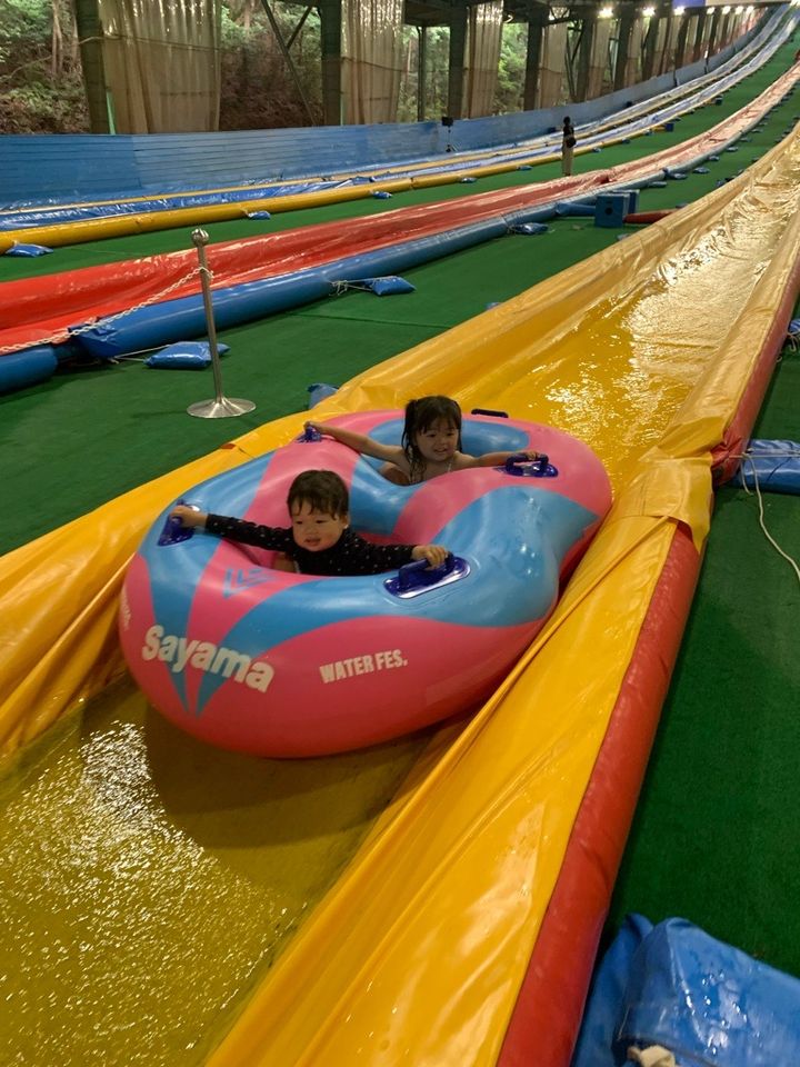 巨大なウォータースライダーが2本、ウォータースライダーが2本、びしょびしょスライダーが1本ありました!浮き輪に乗って滑るスライダーが初めてだったので大興奮していました!