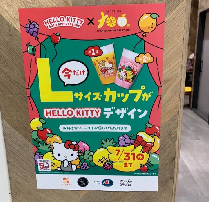 果汁工房果琳が今だけ限定☆【ハローキティ50周年】特別カップだよ