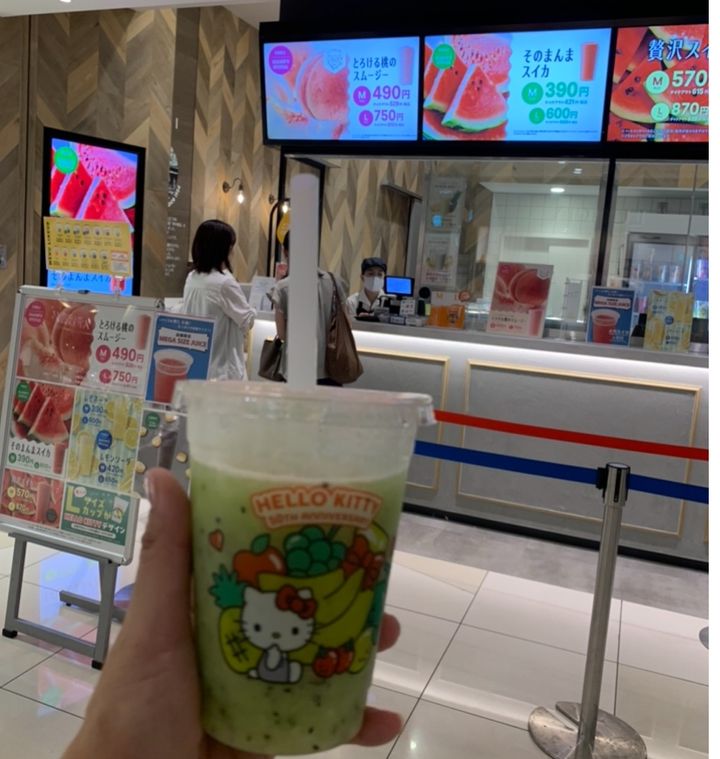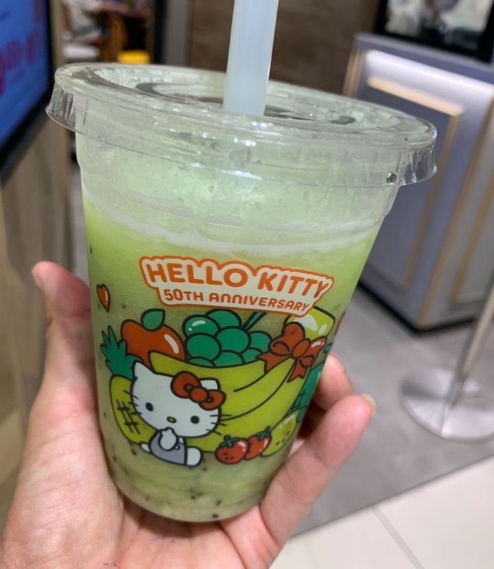 【果汁工房果琳】で、今だけハローキティデザインのかわいいカップに入れてもらえるんです♪