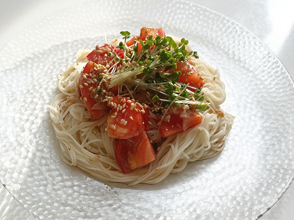• 4.ゆで上がったそうめんを皿に盛り付け、2.をそうめんの上にかける