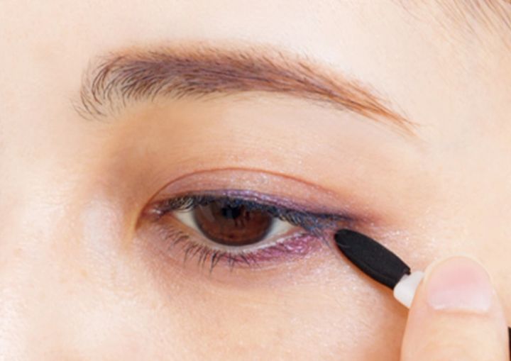 2. Fを、Eの③を塗布した上まぶたのキワに重ねる。そのままだと発色が強いので、指やチップで少しぼかすときれいになじむので◎。