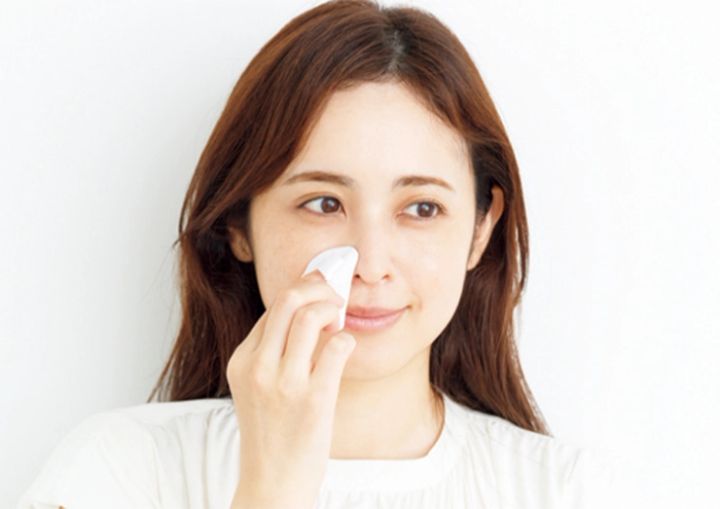 1. パックの液をなじませ、しっかり乾かす。その後Aの下地を、鼻まわりやTゾーンなど、皮脂によるテカリが気になりやすい部分に塗布。
