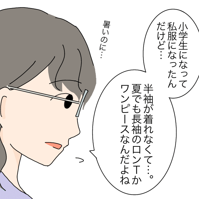 「小学生になって、私服になったんだけど半袖が着れなくて・・。夏でも長袖のロンTかワンピースなんだよね」
