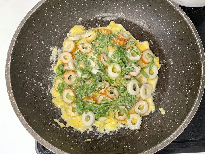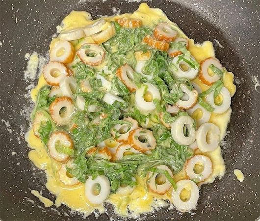 3. 【即席酒の肴】混ぜて焼くだけ10分!「大葉ちくわ焼き」は旨味ふっくらなちくわが卵と相まってもう♡大葉がいい仕事