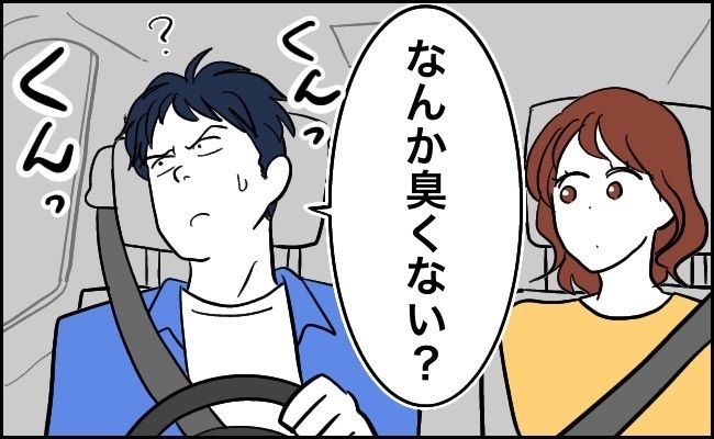 車を走らせてしばらくすると、夫が「なんか車内、くさくない?」と言います。私は鼻炎であまり鼻がよくないためわからず、「もしかして公園で犬のウンコ踏んだんじゃない?(笑)」と冗談で言ったところ、夫は「絶対それだ!」と叫びました。しかも私が犬のウンコを踏んだと決めつけ、私は踏んだ覚えがないので軽い口論になりながら帰宅しました。