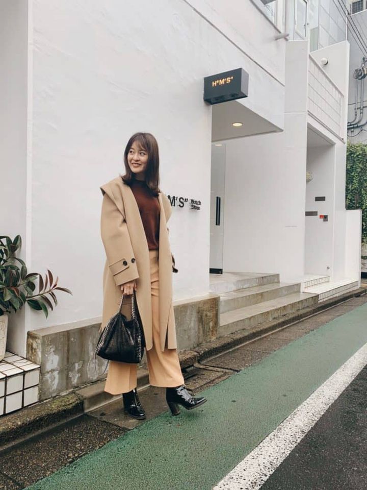インスタグラムでも“映えるアウター”として注目されているポンチョコートをいち早く投入している桐さん。肩周りが楽なのでボリュームトップスやニットの時にも重宝しているそう。さらにざっくりしたシルエットが今年っぽいうえに、薄手の素材で軽いのでインナー次第で暖かさが調整できて季節つなぎにぴったり! 今日はパンツとショートブーツで、きれいめコーデに仕上げているのがさすがです。
