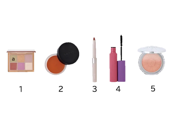 ▶ピンクトーンをメインに、ハイライトカラーにもなるベージュや差し色グリーンがIN。見た目よりもシアーな色づきで使いやすい!