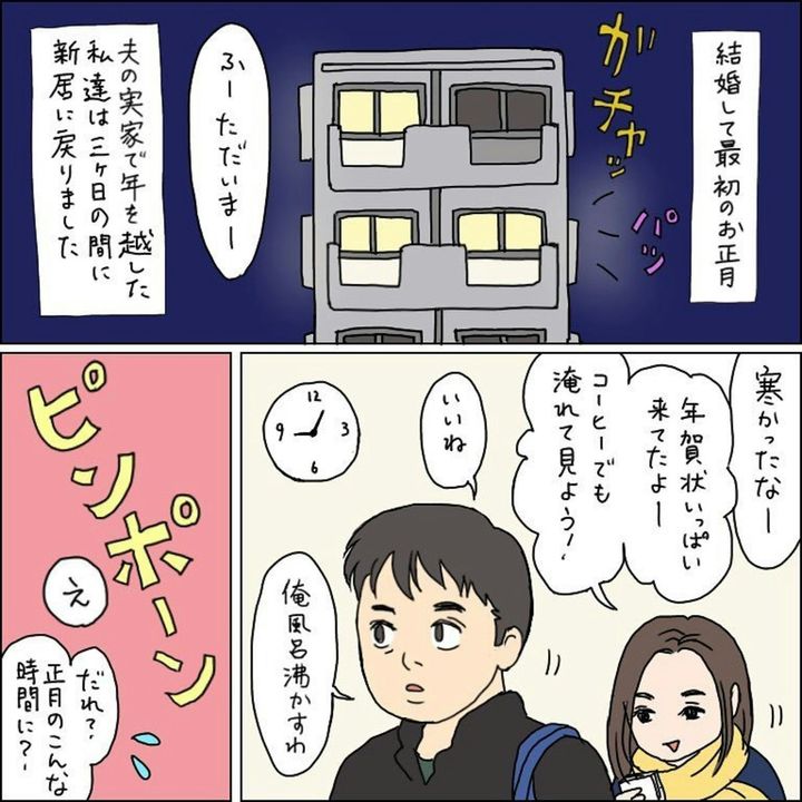 夫婦で迎える初めてのお正月。帰省を終えてやっとひと息というところ、突然の来訪はびっくりしますよね。「お見せしなきゃいけないもの」とまで言われたら身構えてしまいそうです。