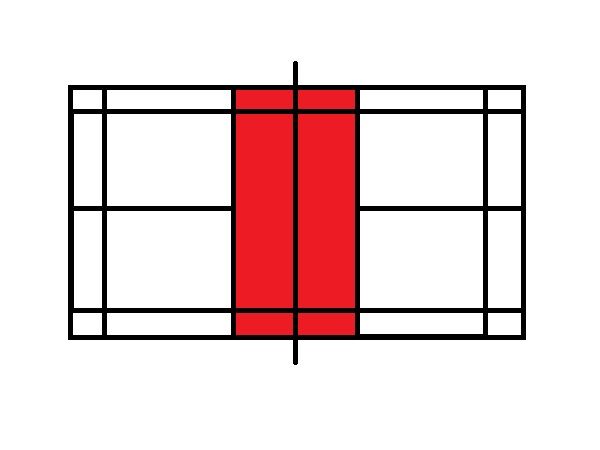 また、ダイレクトで返球してはいけないノンボレーゾーン(キッチン)があるのは、ピックルボールならではのルール。 上の図の赤で塗り潰してあるところでボレーをしてはいけません。