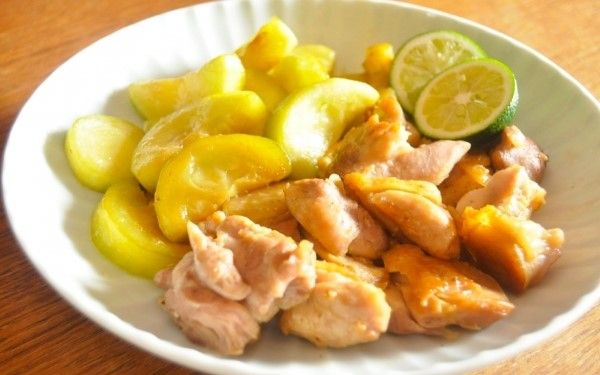調味料は白ナスの甘みを活かすため、塩・しょうゆ・酒のみ。とろ~り食感の白ナスとジューシーな鶏肉のコラボがたまりません。仕上げに「スダチ」を絞って、さっぱりと召し上がれ! ポン酢でも代用OKです。