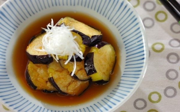 白ナスと油の相性はとても良く、白ナスの魅力を最大限に引き出すことができます。出汁を吸った白ナスがとろけるようなおいしさ。麺つゆでさっぱりと楽しめます。暑い日には冷やして食べても◎。