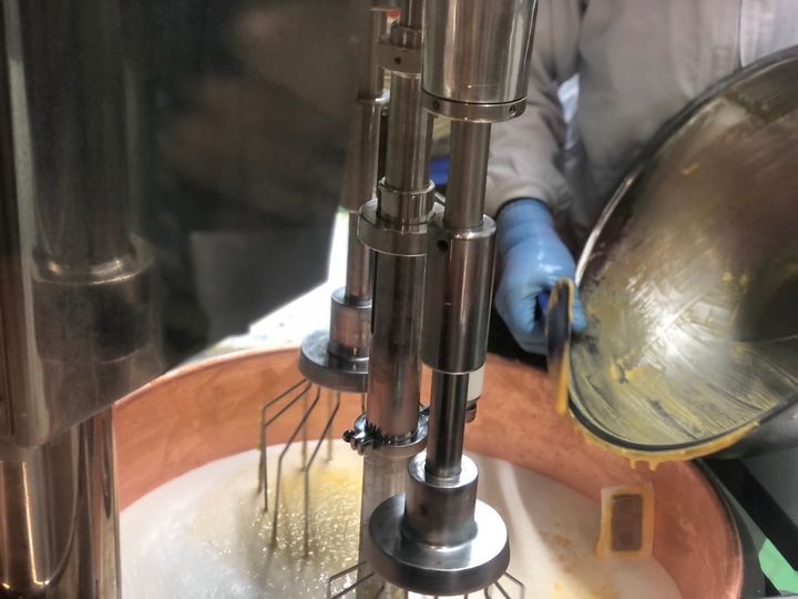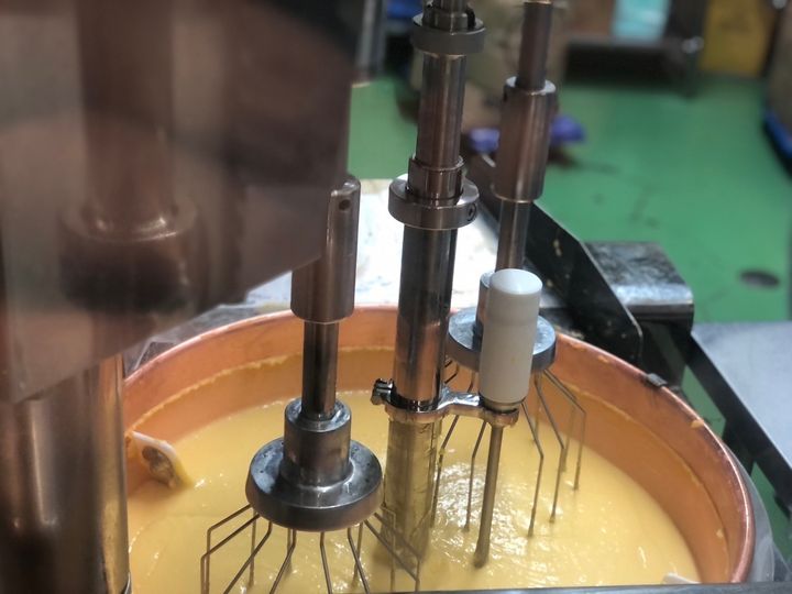 クリームを作っている釜もよく見えます。牛乳から次々とクリームになっていく様子がなんかいい!おいしそう!