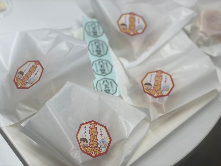 また、さきほどと同じく包装体験も行えます。味はランダムとなっており、私たちは、小倉や抹茶、チョコが入っていました。