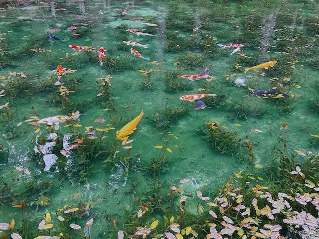 実際に目にするモネの池はとにかく透明度が抜群で、睡蓮の葉や水草の中をカラフルな鯉が泳ぐ姿は本当に圧巻でした。絵画のようなモネの池を見たらやっぱりカメラに収めたいと思いますよね。ですが、そんなモネの池の感動を見たままに写真に残すのは、なかなか難しいんです。