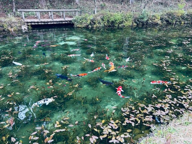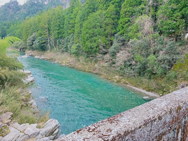 モネの池第一駐車場とあじさい園駐車場の間にある橋からは板取川というコバルトグリーンの美しい川を眺めることもできるので必見です。