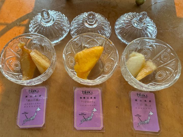 「堀江Blue」では3種の桃食べ比べもできておすすめです♡