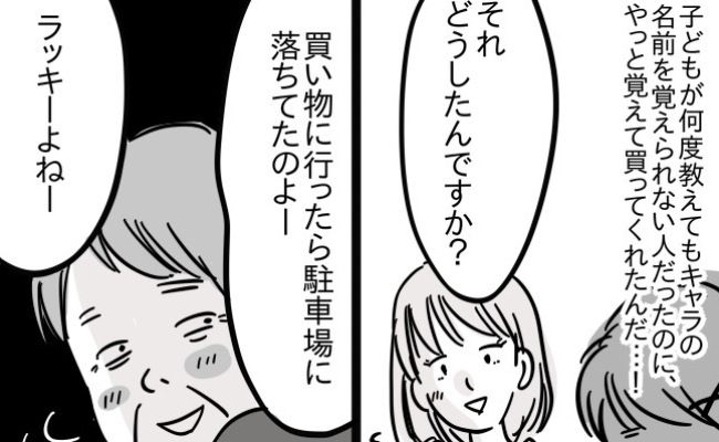 ですが、よく見ると振っていたのは子どもが好きなキャラの人形。やっと名前を覚えて買ってきてくれたのかなと思いながら、「それ、どうしたんですか?」と一応聞き、義母が子どもに人形を渡すのを見ていました。