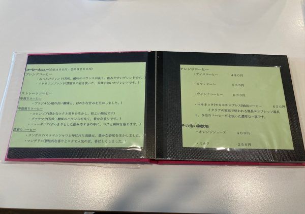 ブレンドコーヒーが2種類。 中煎り、中深煎り、深煎りのストレートコーヒーが飲めるなんて珈琲好きにはたまらないですよね。 マイルドがお好みならみつたけブレンド、目覚めのよい苦味あるものお好みならイタリアンブレンドがお勧めです。
