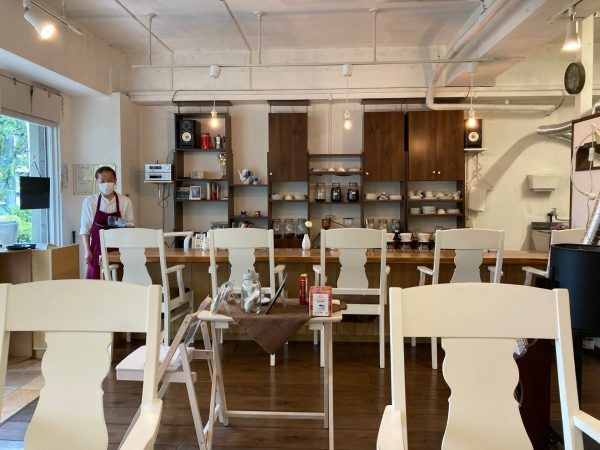 阪急南茨木駅から徒歩12分。セルフうどんの金比羅製麺の真向かいの1階にこちらのお店があります。 白が基調のオープンカフェ。全面ガラスなので開放感であふれています。 店先の黒板ボードにはメニューに記載されてない、その時限定で入荷されたお勧め珈琲が案内されてます。