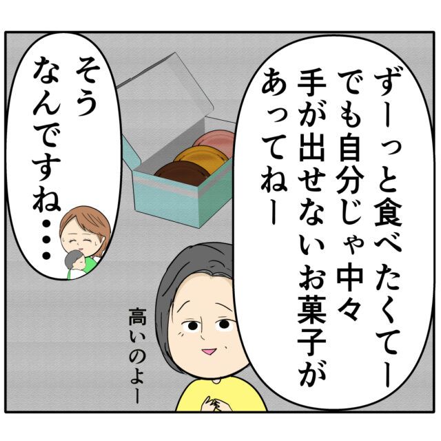 ここぞとばかりに高価なお菓子をリクエストしようとする図々しいやば美さんに、笑顔が引きつるすみれさん。
