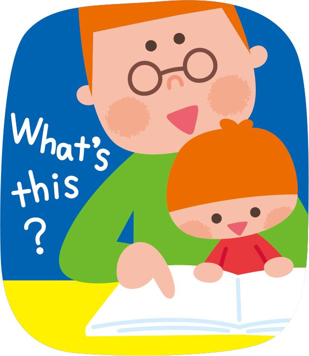 絵本に描かれているものをおうちの方が指して、「何かな?」と日本語で言ってから、“Whatʼs this?” “A dog”という質問と答えの両方を英語で言って聞かせます。お散歩中にも“A dog! Itʼs big!”と言うなど、知っている言葉はどんどん使っていきましょう。