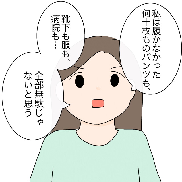 「・・私は・・履かなかった何十枚のパンツも、靴下も服も病院も・・全部無駄じゃないと思う」