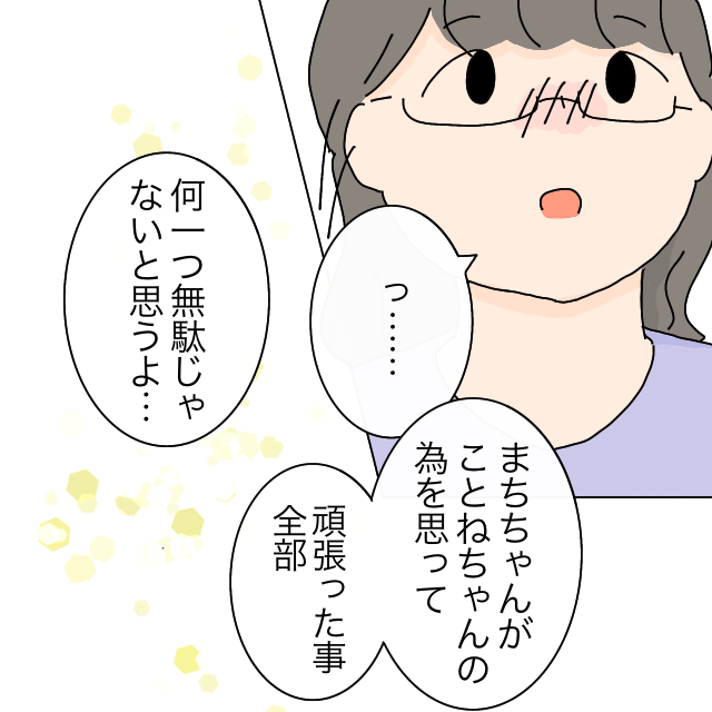 「まちちゃんがことねちゃんのためを思って頑張ったこと全部、何一つ無駄じゃないと思うよ・・」