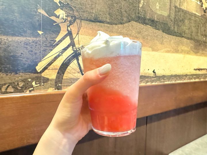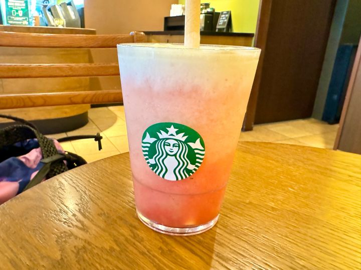 「ラブ & ピーチ フラペチーノ」は、まるで桃を丸かじりしたよう🍑