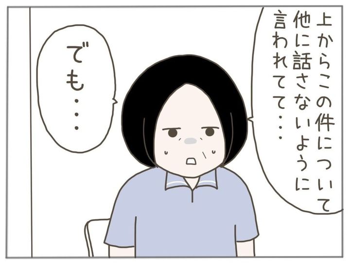 恥を忍び、自分と佐藤くんとのトラブルを介護主任に打ち明けるミキ子さん。覚悟が必要だったことでしょう。介護主任も、複雑な表情で聞き入っています。