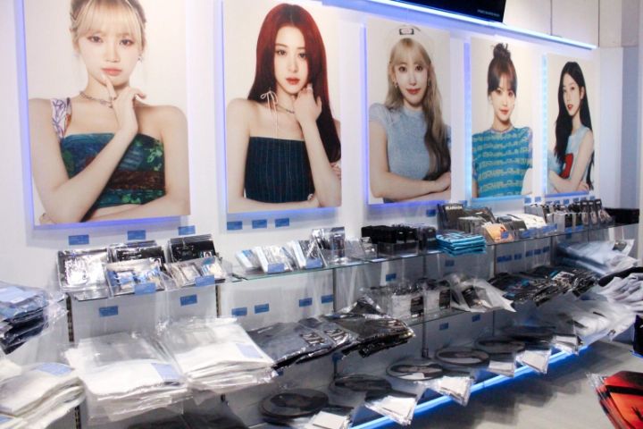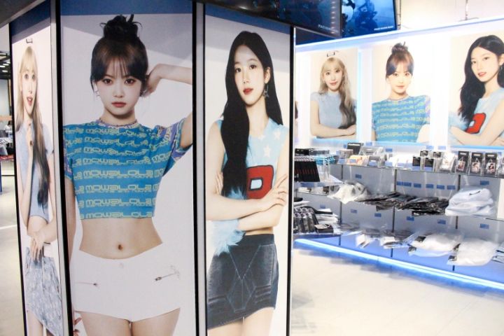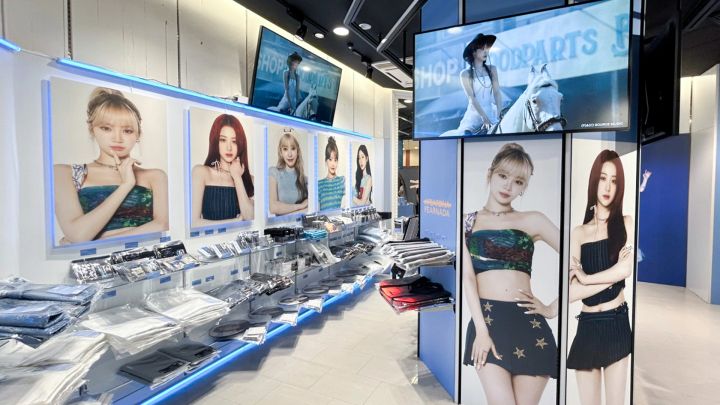 店内には、LE SSERAFIMのメンバーの最新ビジュアルが大きく掲出されています。