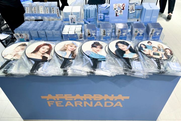店内には、今回の『LE SSERAFIM FAN MEETING ‘FEARNADA’ 2024 S/S - JAPAN』Official Merch.だけでなく、過去に発売されたグッズも販売しています。