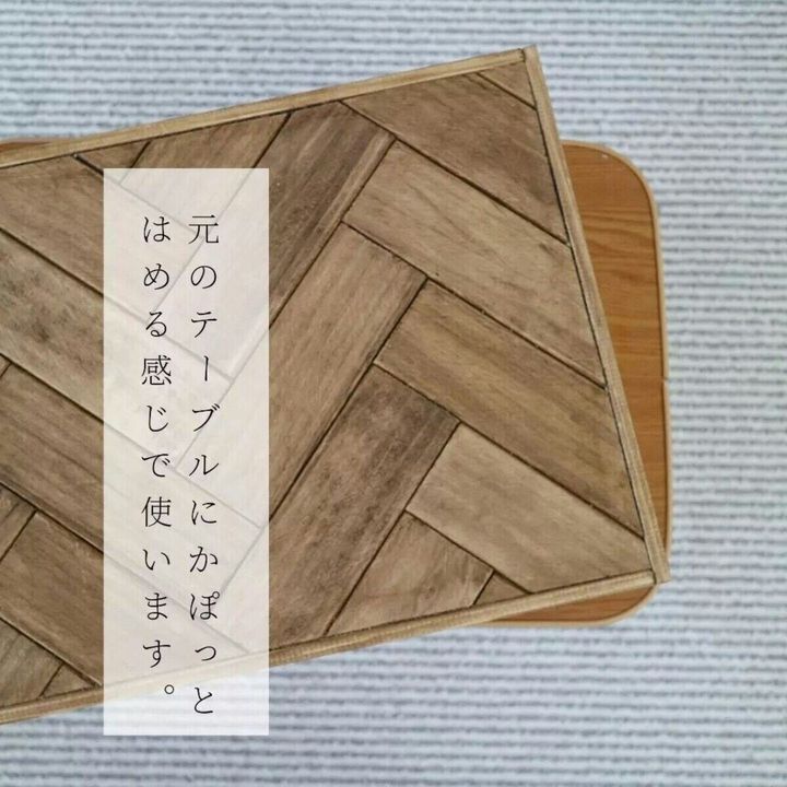 手持ちのテーブルに天板にかぶせて使います。チープなテーブルが、ボードを乗せるだけで一気におしゃれなテーブルに変身しました。